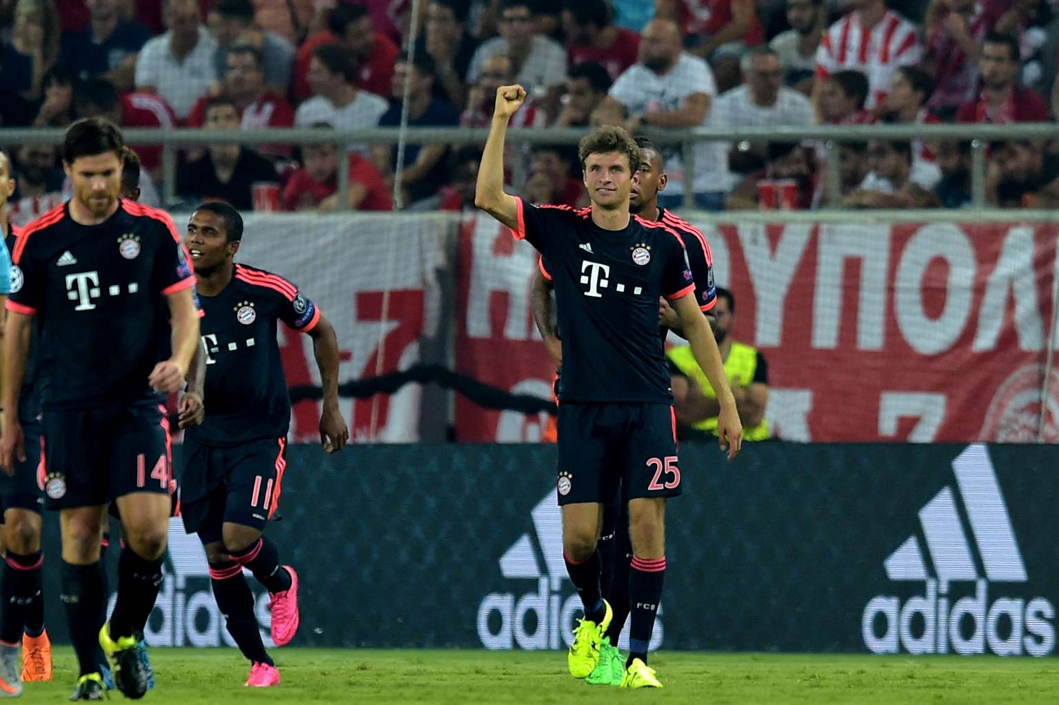 PIRAEUS (AFP) - A Thomas Mueller brace and a Mario Goetze snap shot lifted Bayern Munich to a 3-0 win over Olympiakos in their Champions League Group F opener on Wednesday as tensions boiled over on the terraces.