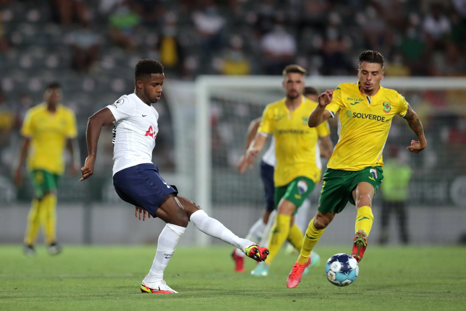 Pacos de Ferreira's Nuno Santos (right) in action against Tottenham's Ryan Sessegnon (left).