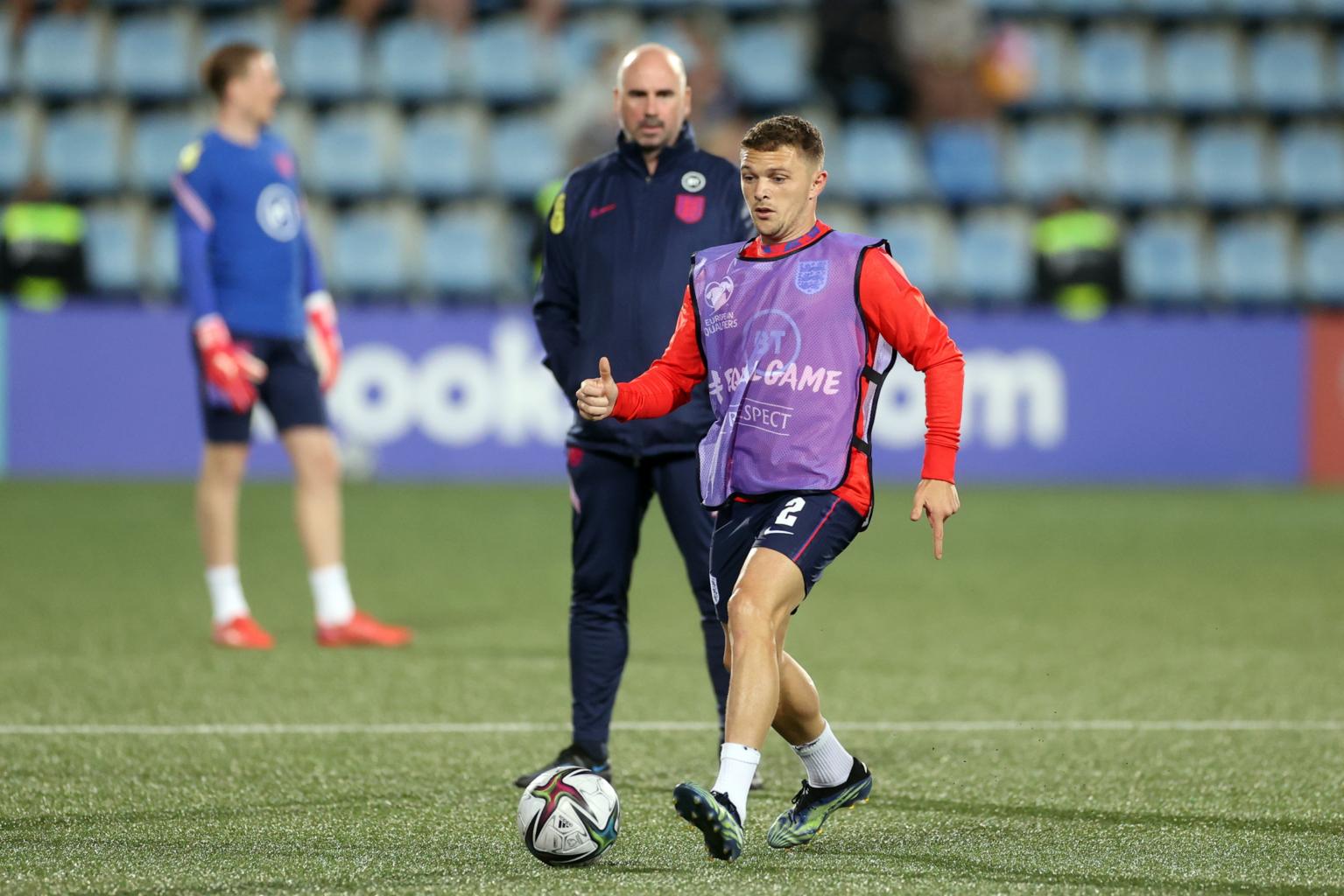 English footballer Kieran Trippier warming up before the Uefa Qualifiers group one match against Andorra on Oct 9, 2021.