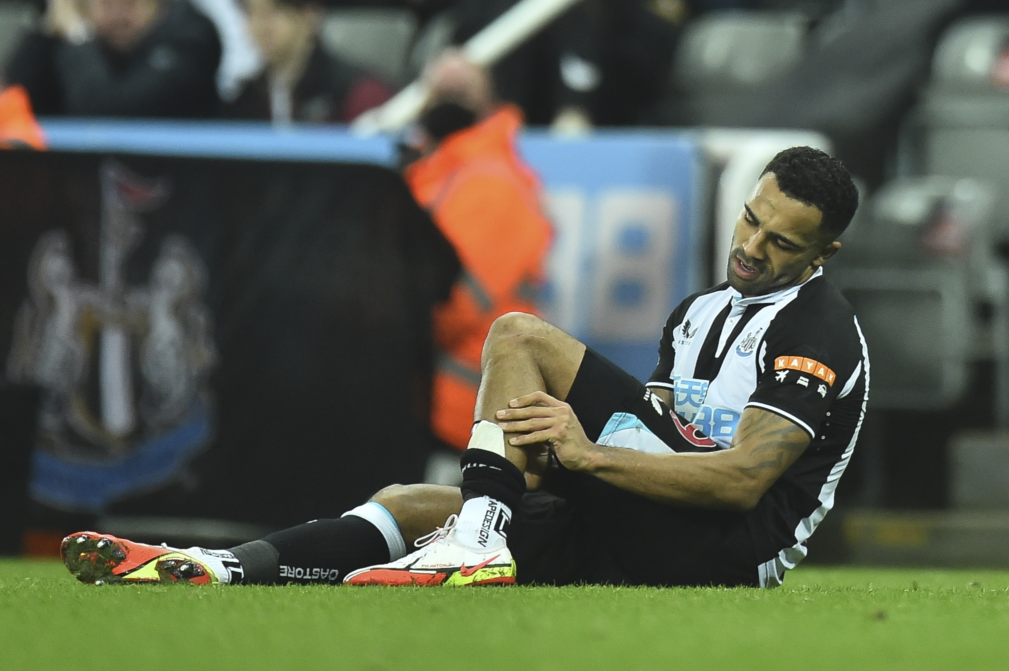 Newcastle's Callum Wilson sits injured during the Premier League match against Manchester United.