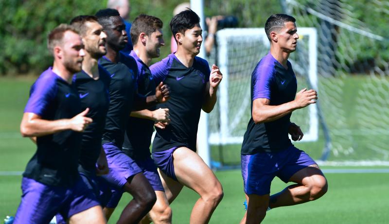 Tottenham Hotspur players during a training session at Loyola Marymount University in Los Angeles, California, on July 23, 2018.