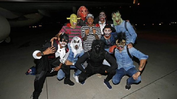 A photo tweeted by FC Barcelona of the players in their Halloween masks.