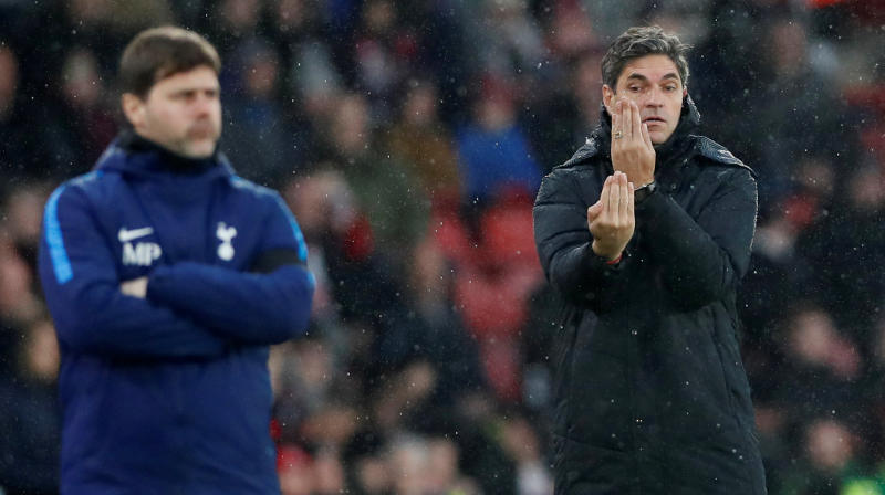 Southampton manager Mauricio Pellegrino (right) and Tottenham manager Mauricio Pochettino at St Mary's Stadium, Southampton, Britain on Jan 21, 2018.