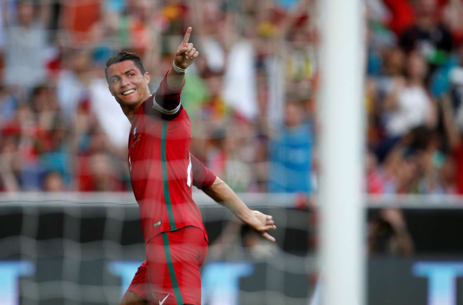 Portugal's Cristiano Ronaldo celebrating his goal against Estonia.