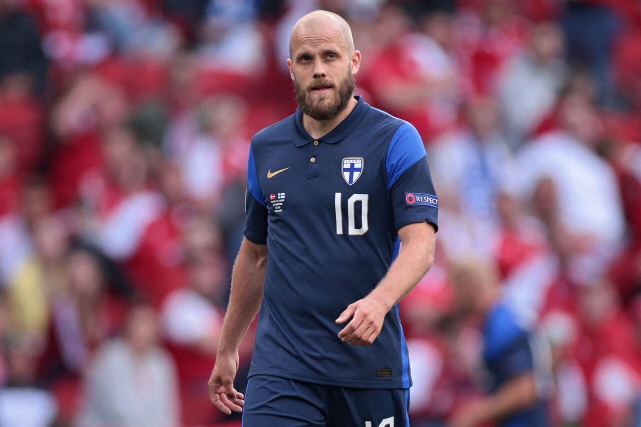 Teemu Pukki on the pitch at the Parken Stadium in Copenhagen on June 12, 2021.