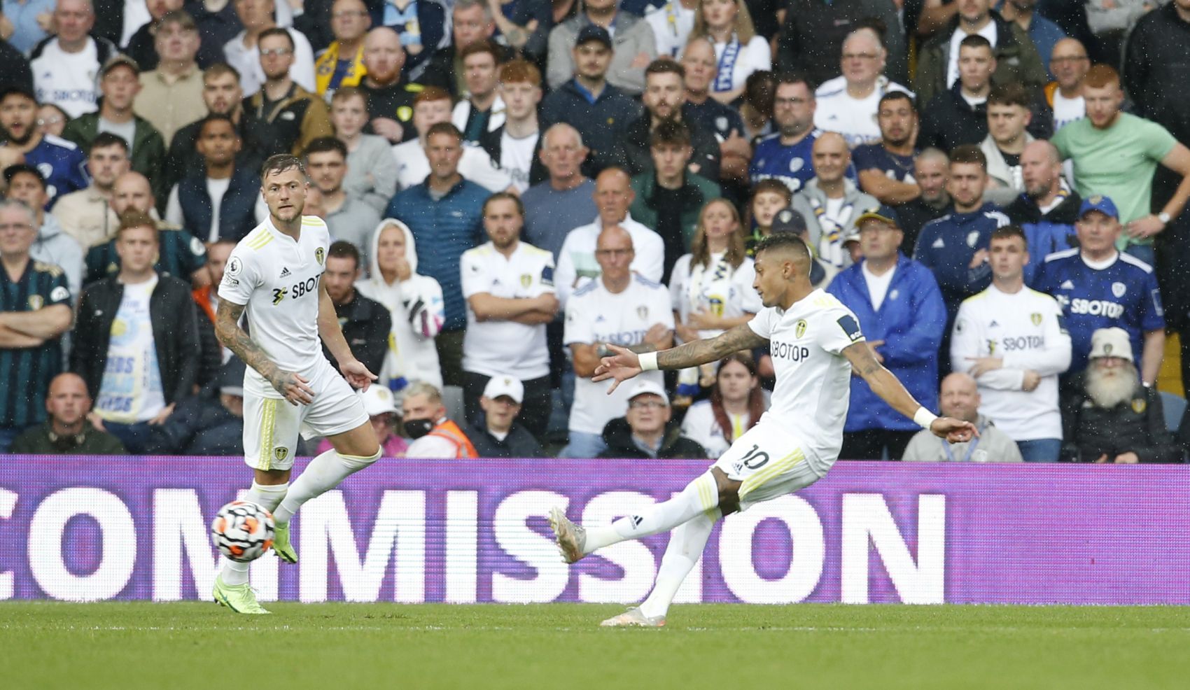 Leeds United's Raphinha scores their second goal.