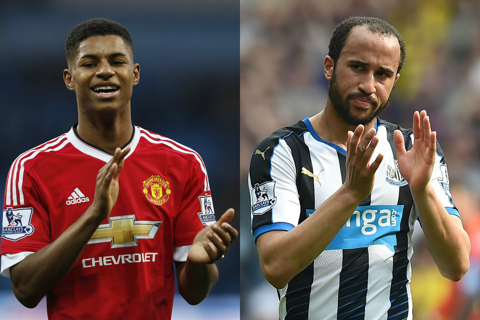 Manchester United's Marcus Rashford (left) and Newcastle United winger Andros Townsend were named in a provisional 26-man England squad for Euro 2016 on May 16, 2016.