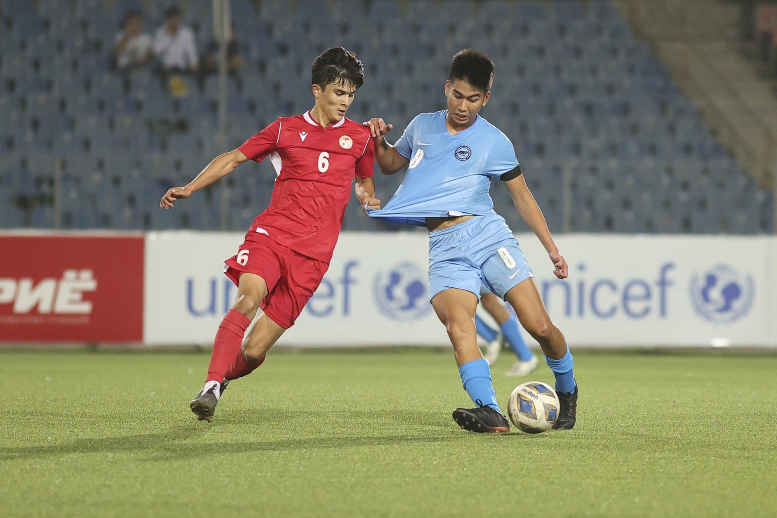 Singapore U19 midfielder Woo Chun Wei in action against Tajikistan on Sept 14, 2022.