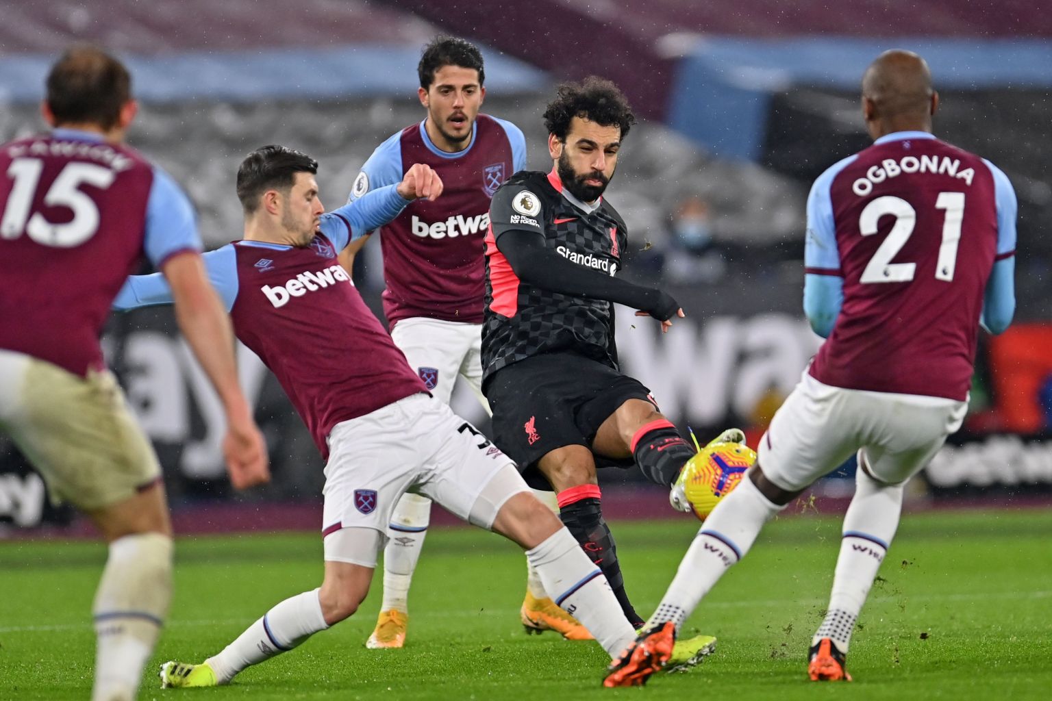 Leading the Liverpool charge almost single-handed, Salah shot narrowly wide from 20 yards. Antonio was inches away from putting West Ham in front on the counter, the forward shooting just wide on the turn.