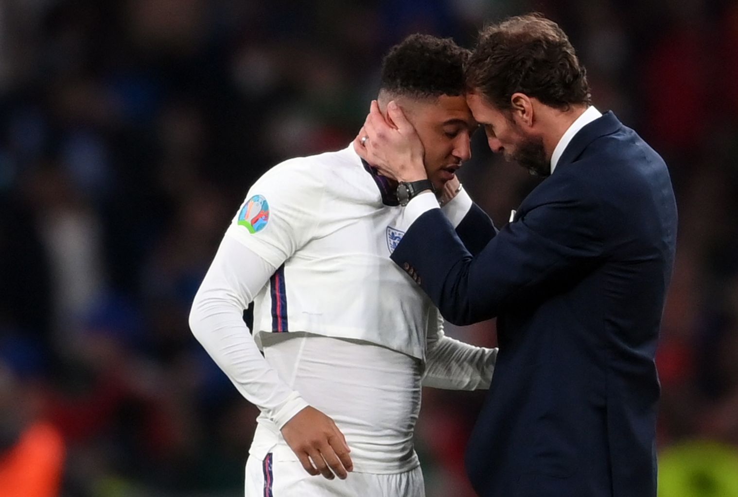 England manager Gareth Southgate comforts Sancho after he failed to score in the penalty shootout.