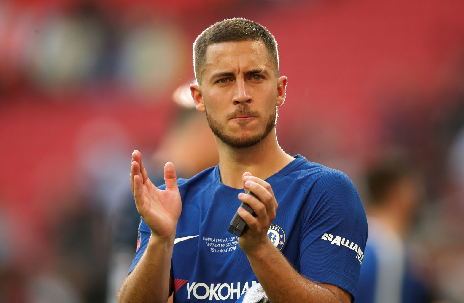 Chelsea's Eden Hazard applauds the fans after winning the FA Cup final in May 2018.