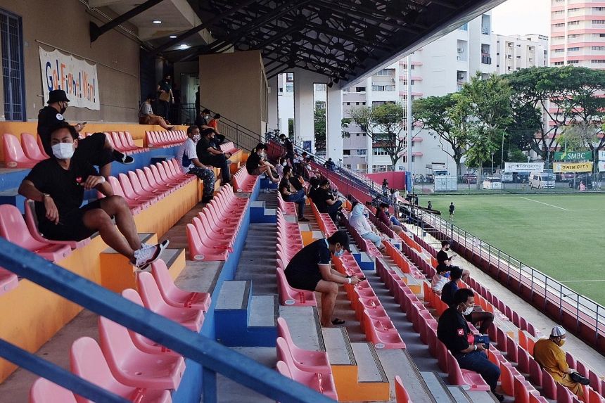 They were allowed to purchase a match ticket only after fulfilling the Covid status checks. Following a temperature check and TraceTogether check-in, they were led into the stands.