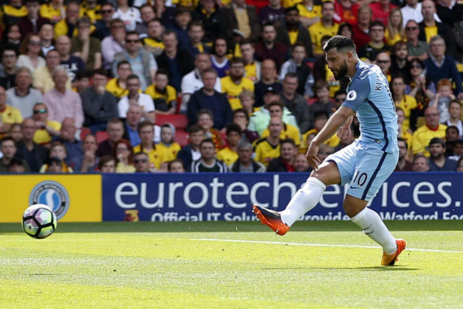 Watford v Manchester City - Premier League - Vicarage Road - Manchester City's Sergio Aguero scores their second goal.