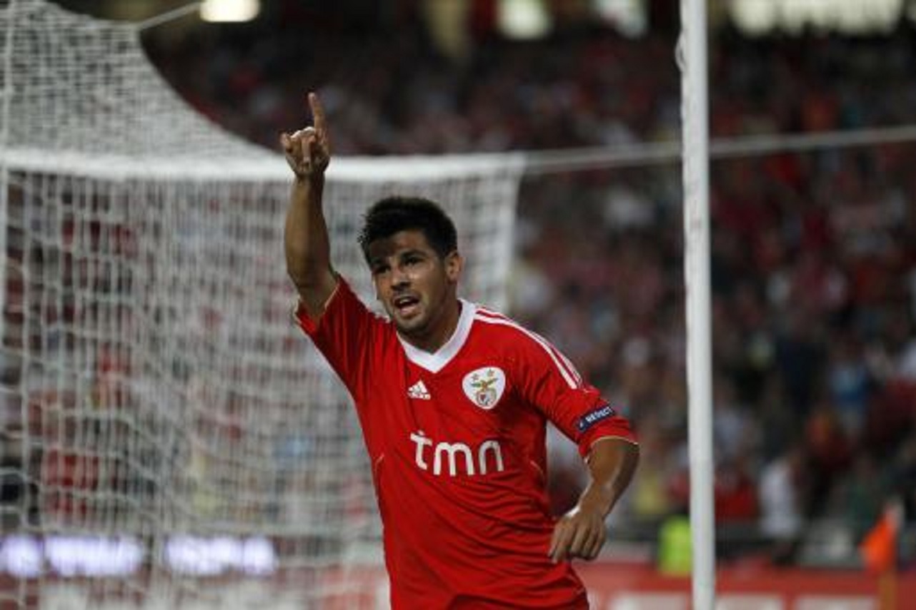Benfica's Nolito celebrates his goal against Trabzonspor during the first leg of their Champions League third qualifying round soccer match at Luz stadium in Lisbon on July 27, 2011.