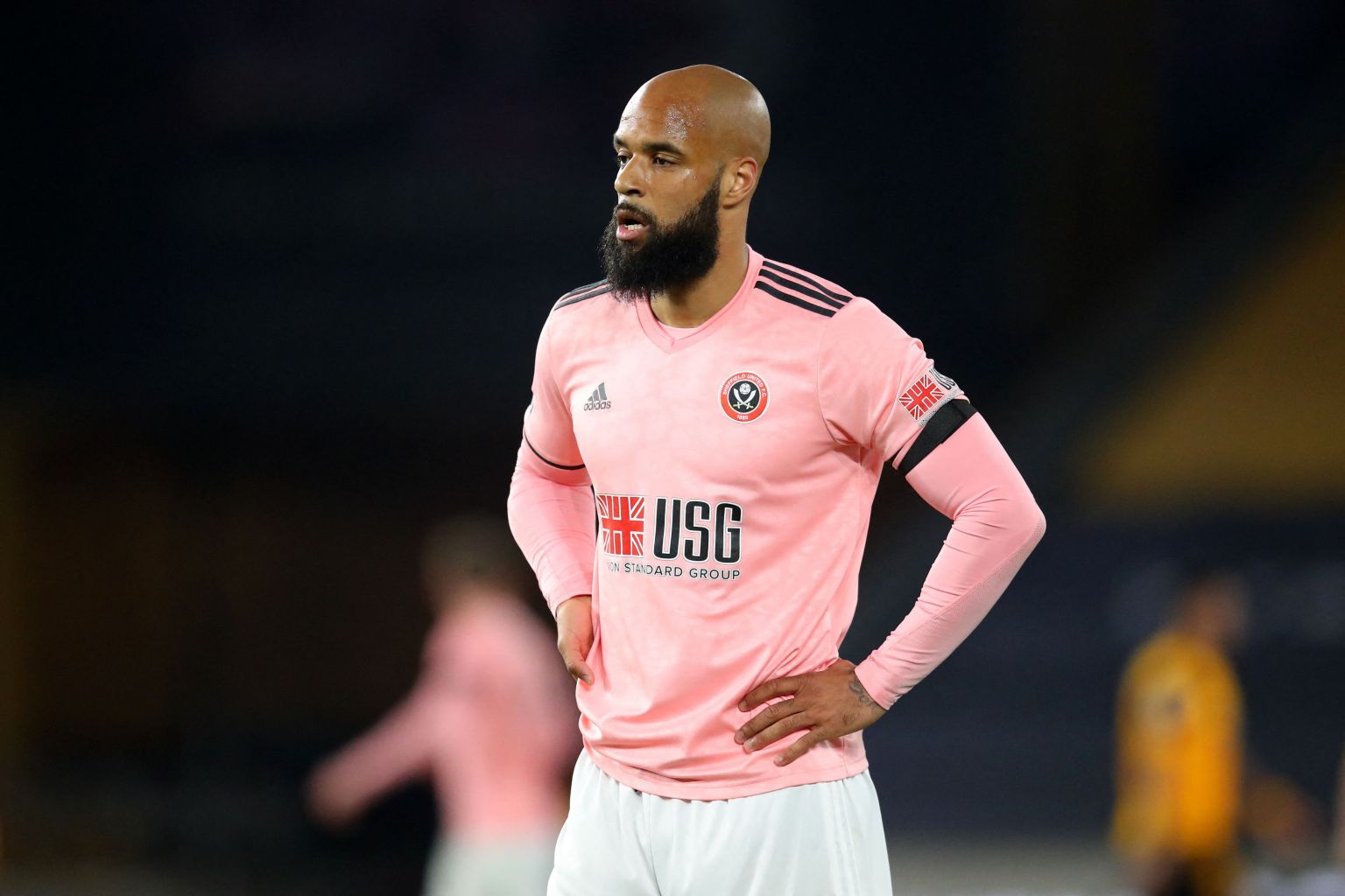 Sheffield United striker David McGoldrick reacts as defeat by Wolves means his team is relagated from the Premier League.