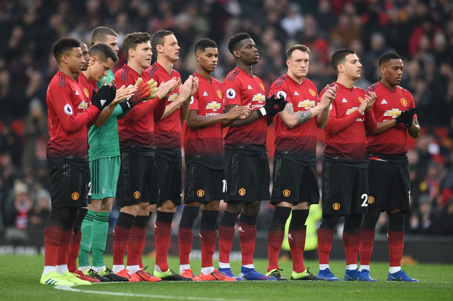 United players applaud late former manager Matt Busby before kicking off against Brighton on Jan 19, 2019.