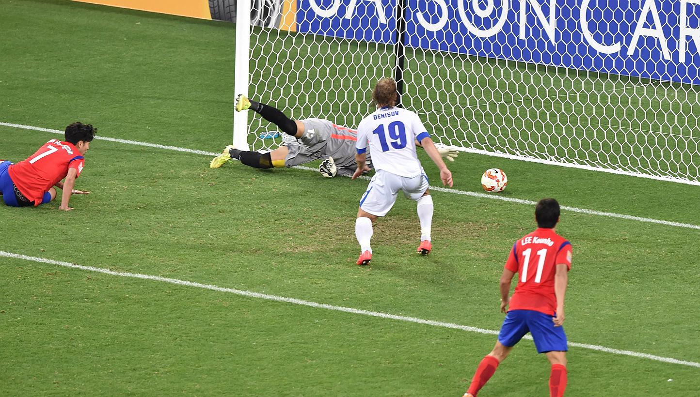 Striker Lee Jeong Hyeop's header forced another acrobatic save from Nesterov five minutes after the break, but moments later Kim's attempted clearance almost ricocheted into the Korean goal after cannoning off defender Kim Jin Su's backside.