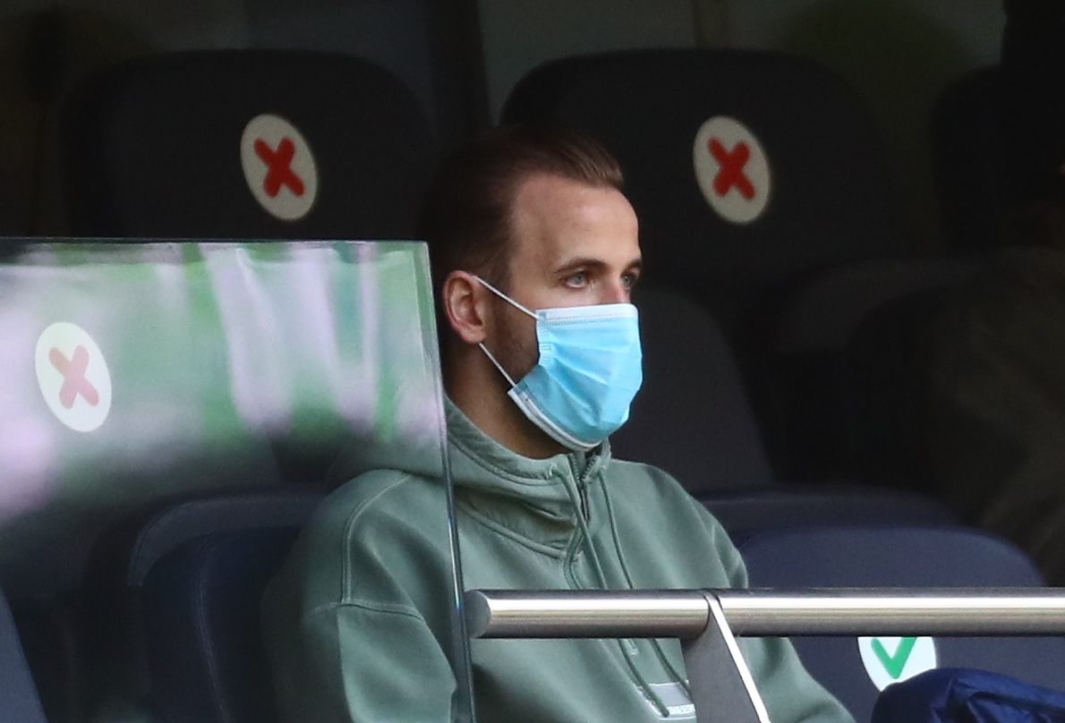 Kane watches Tottenham play Southampton on April 21, 2021.