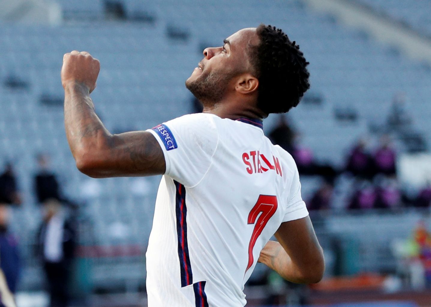 Raheem Sterling celebrates scoring for England.
