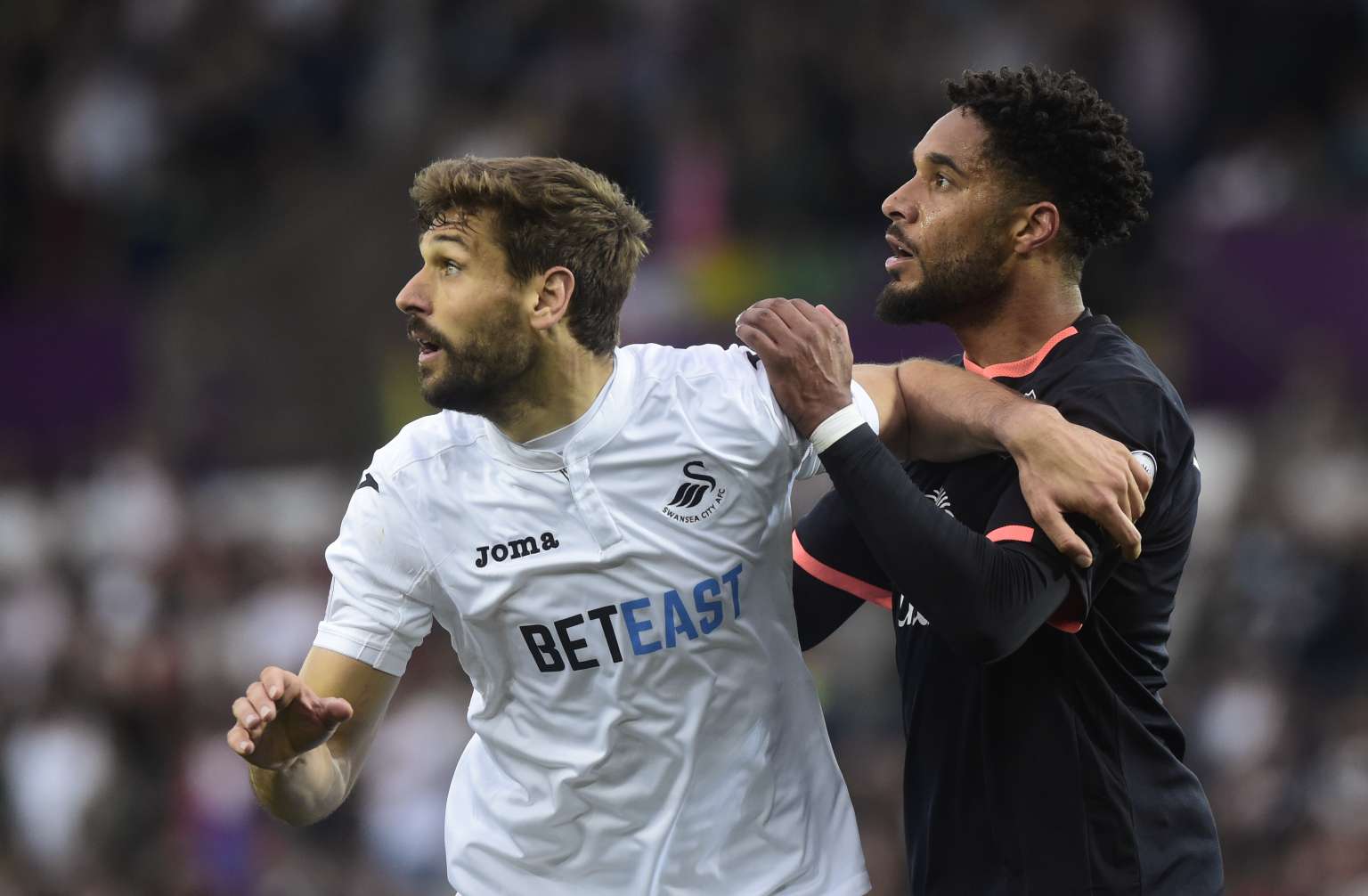 Swansea City's Fernando Llorente in action with Everton's Ashley Williams.