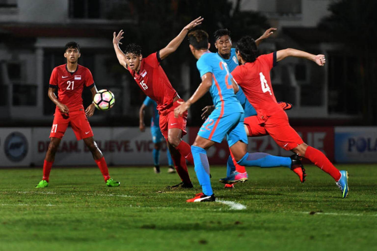 Young Lions competing against India’s U-23 side during a friendly match at Choa Chu Kang Stadium on July 9, 2017.