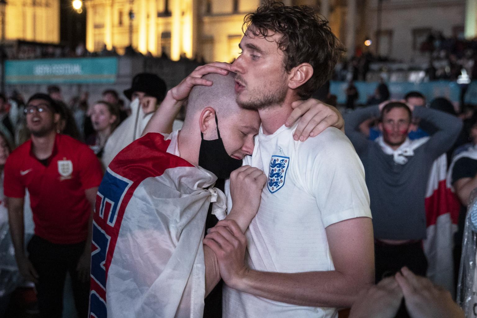 Supporters reacting to England's loss in the Euro 2020 final, in Trafalgar square, London, on July 11, 2021.
