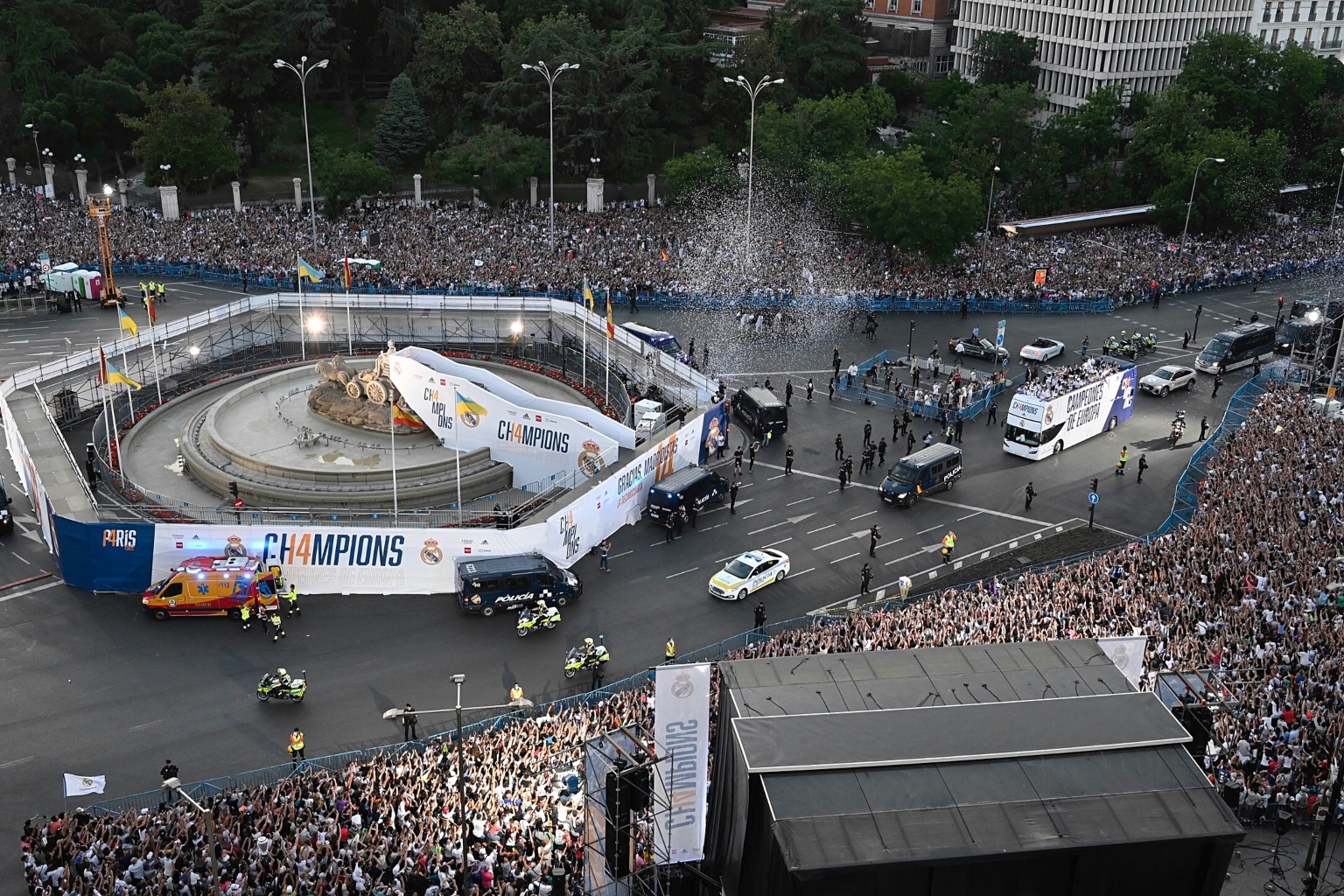 Traffic restrictions had been in place all over Madrid since late on Saturday as supporters started gathering around the central Cibeles fountain to celebrate the team's fifth Champions League crown in nine years, secured by a Vinicius Jr strike just before the hour with Real's first attempt on goal.