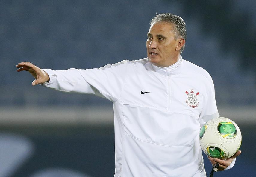 A file picture take in 2012 shows Tite gives directions to players during an official training session ahead of the FIFA Club World Cup 2012 final at Yokohama International Stadium in Yokohama, Japan.