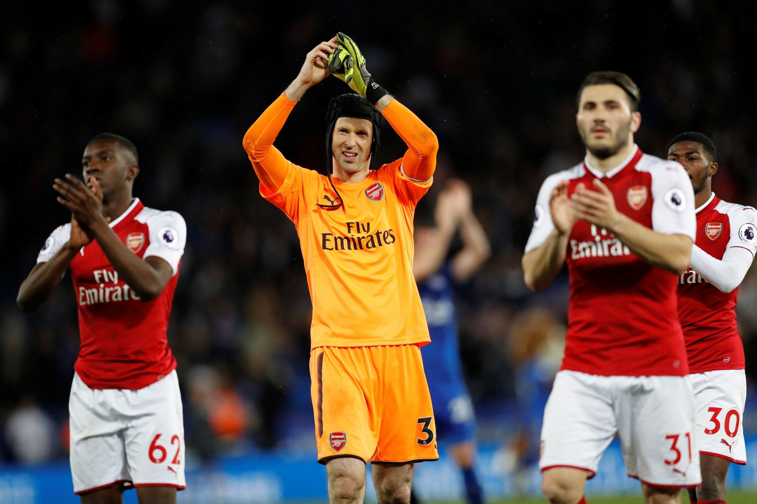 Arsenal's Petr Cech applauding the team's fans after a match.