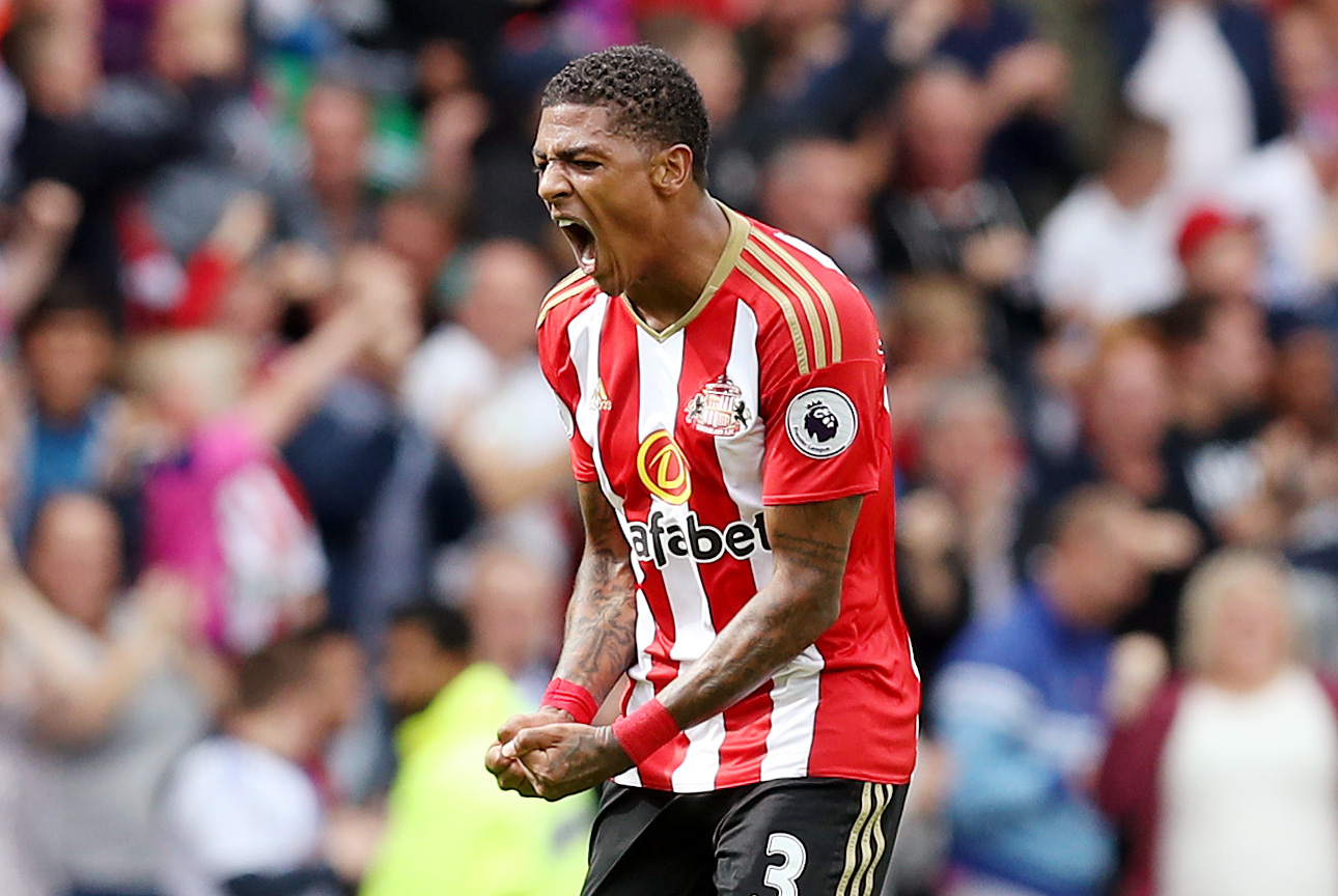 Sunderland's Patrick van Aanholt celebrates scoring against Middlesbrough on Aug 21, 2016.
