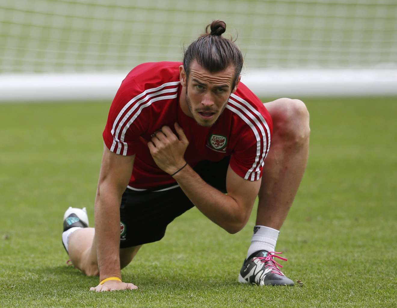Wales' Gareth Bale attends a training session at the Futur Stade de Bordeaux in France, on June 10, 2016.