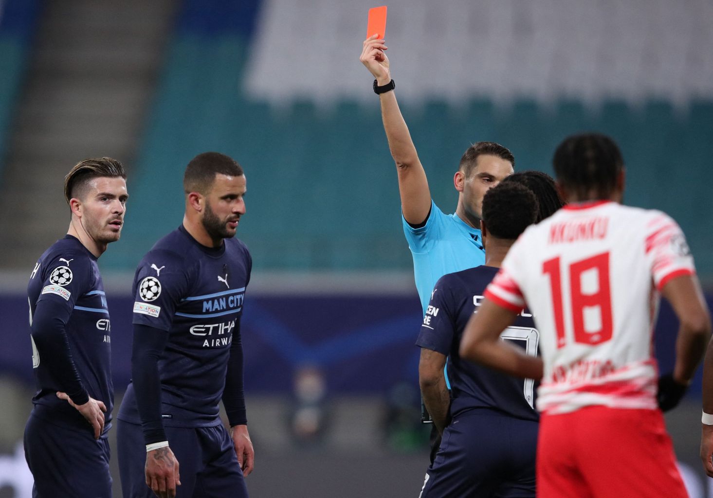 Walker's dismissal only served to reduce City's numbers for the final seven minutes as Leipzig held on.