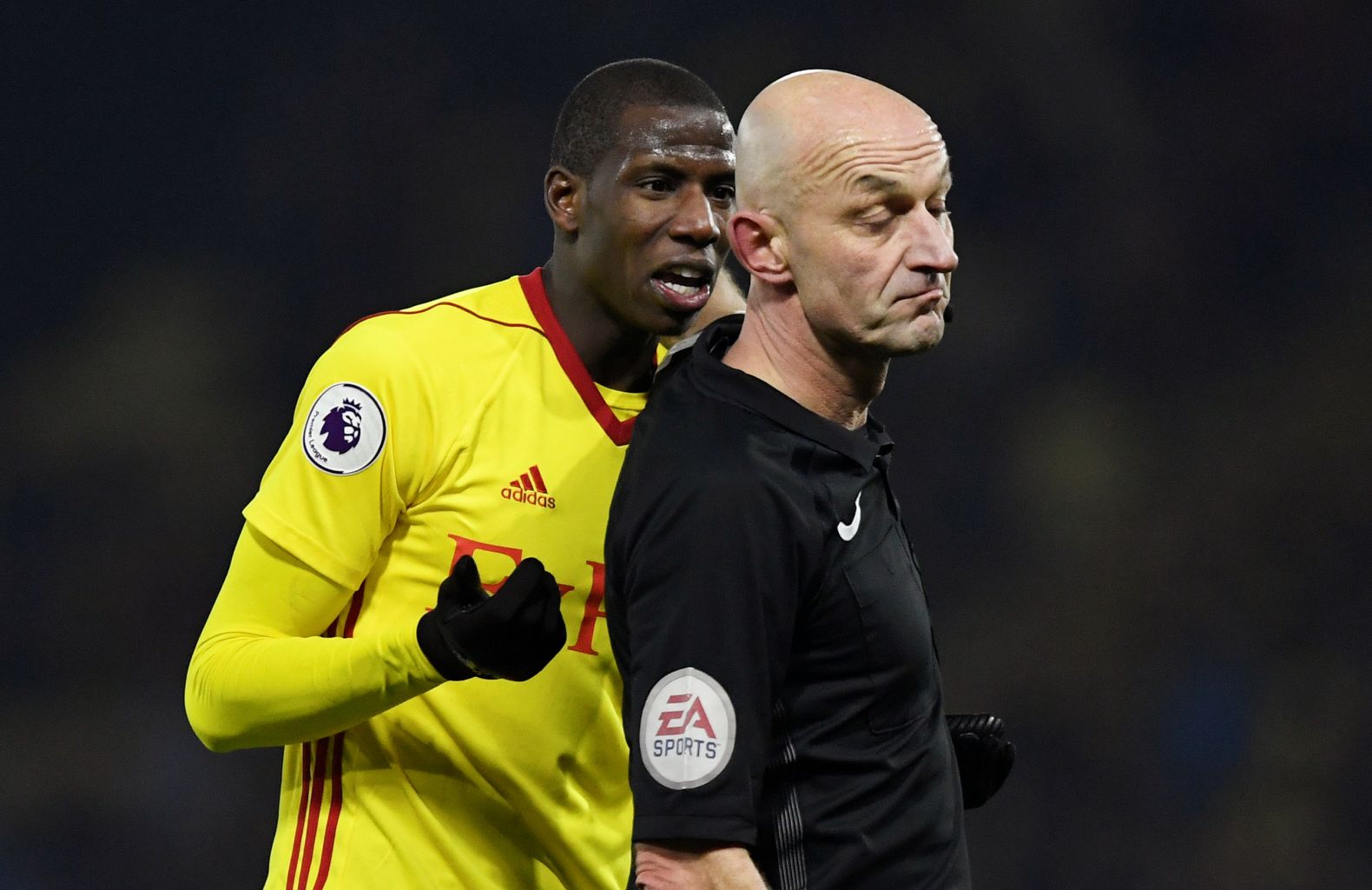 Watford's Abdoulaye Doucoure appeals to referee Roger East.