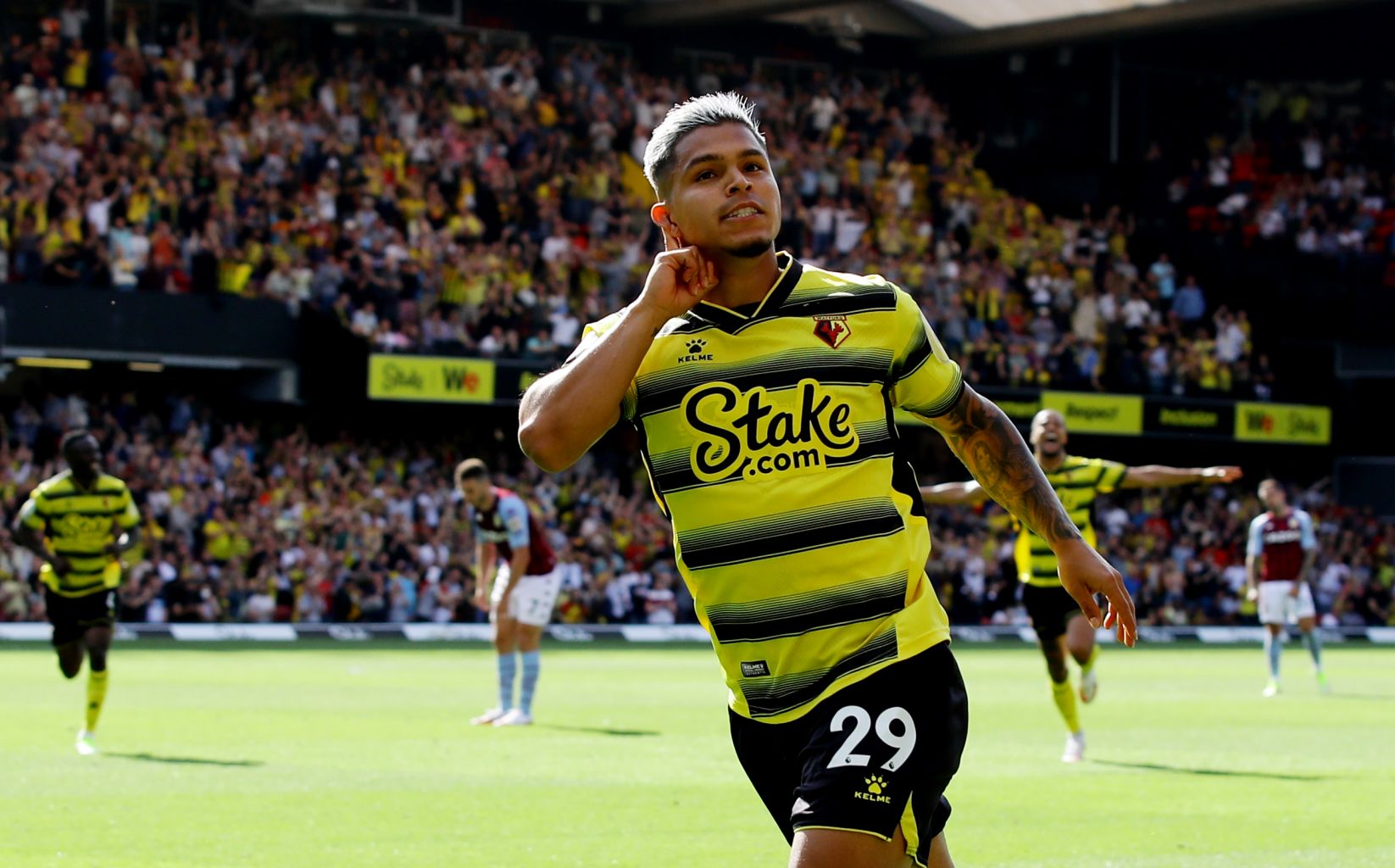 Watford's Cucho Hernandez celebrates scoring their third goal.