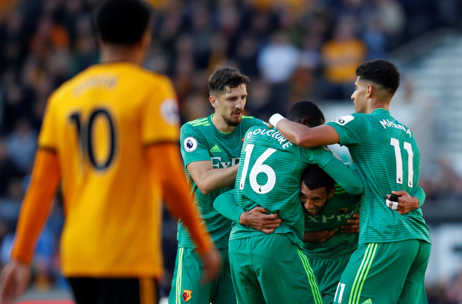 WOLVERHAMPTON, England (REUTERS)- Wolverhampton Wanderers' impressive campaign as Premier League newcomers hit a roadblock at Molineux on Saturday (Oct 20) when two goals in the space of 58 first-half seconds set Watford on the way to a deserved 2-0 victory.