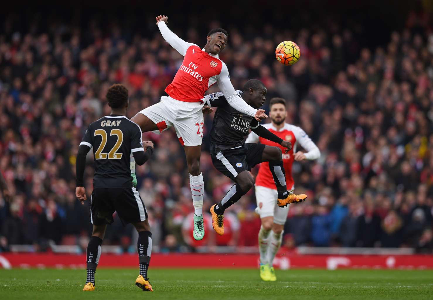 Arsenal's Danny Welbeck (centre) in action during their match against Leicester City on Feb 14, 2016.