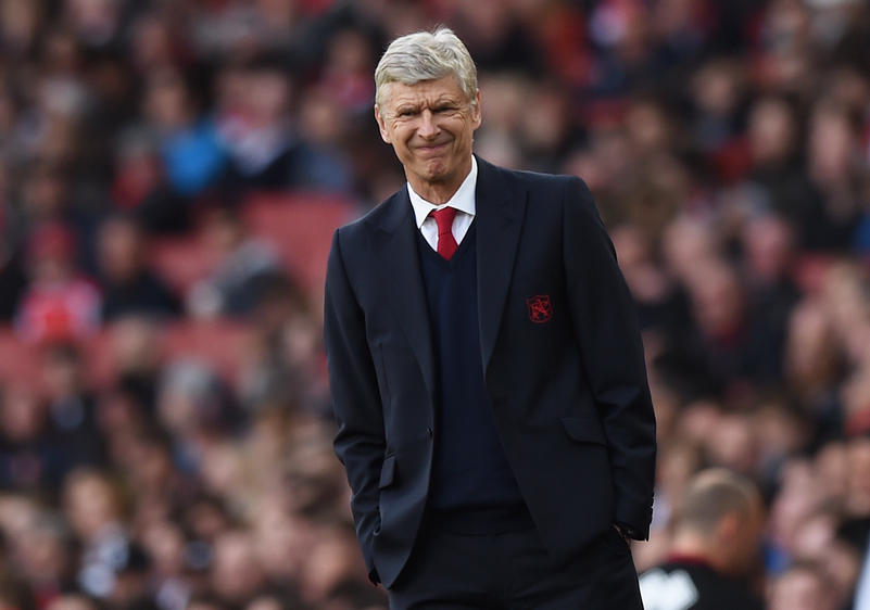 Arsenal manager Arsene Wenger reacts during the Barclays Premier League match between Arsenal and Norwich City on April 30, 2016.