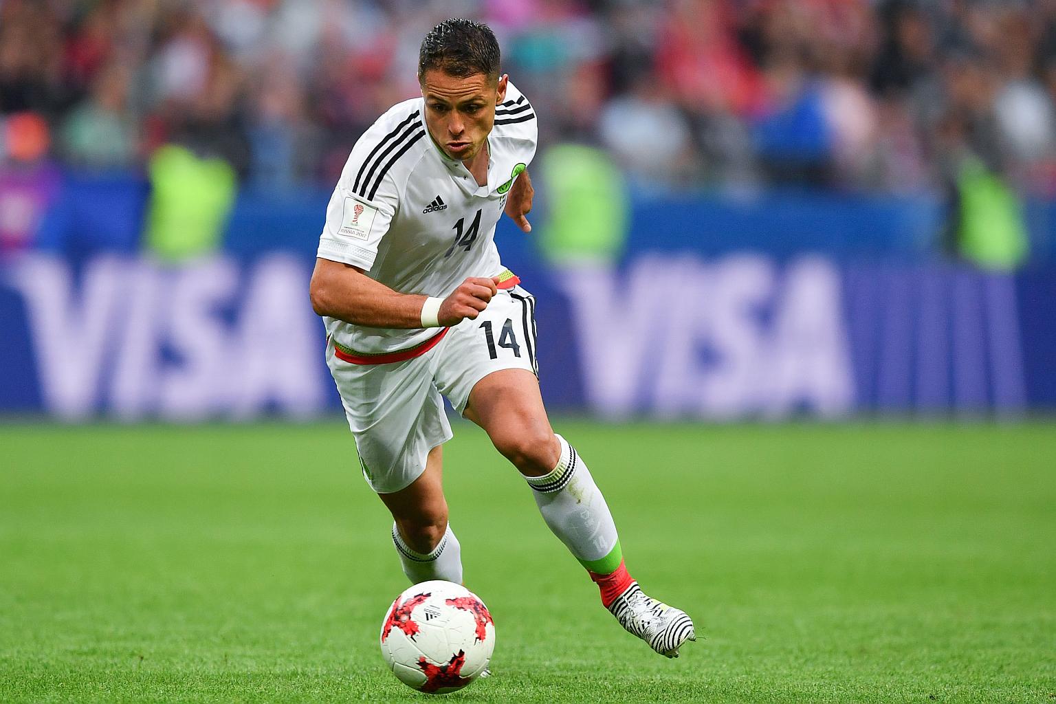 Mexico's forward Javier Hernandez plays the ball during the 2017 Confederations Cup group A football match between Mexico and Russia at the Kazan Arena Stadium in Kazan.