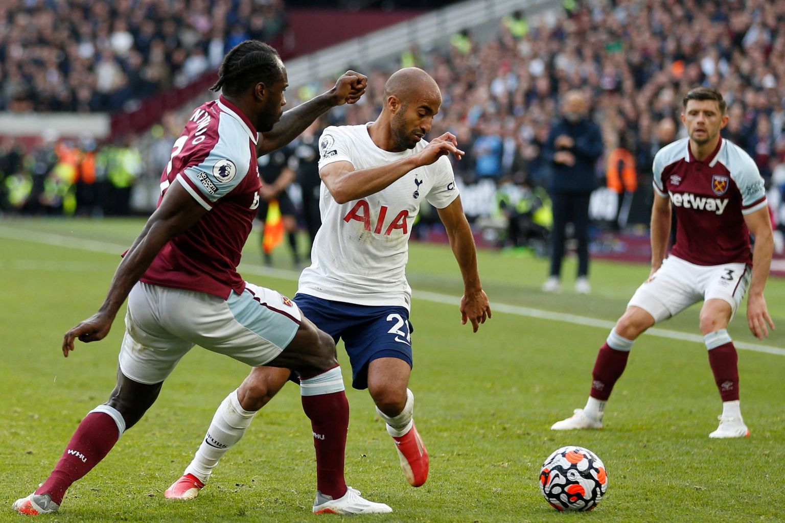 West Ham United's Michail Antonio (left) in action with Tottenham Hotspur's Lucas Moura.