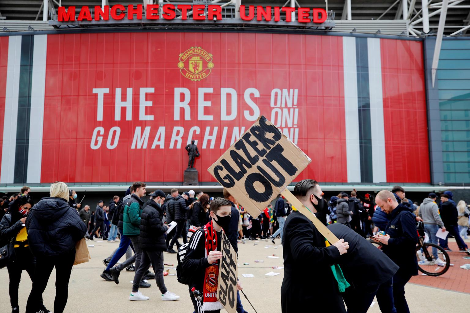 Fans protest against Manchester United's owners outside the stadium, on May 2, 2021.