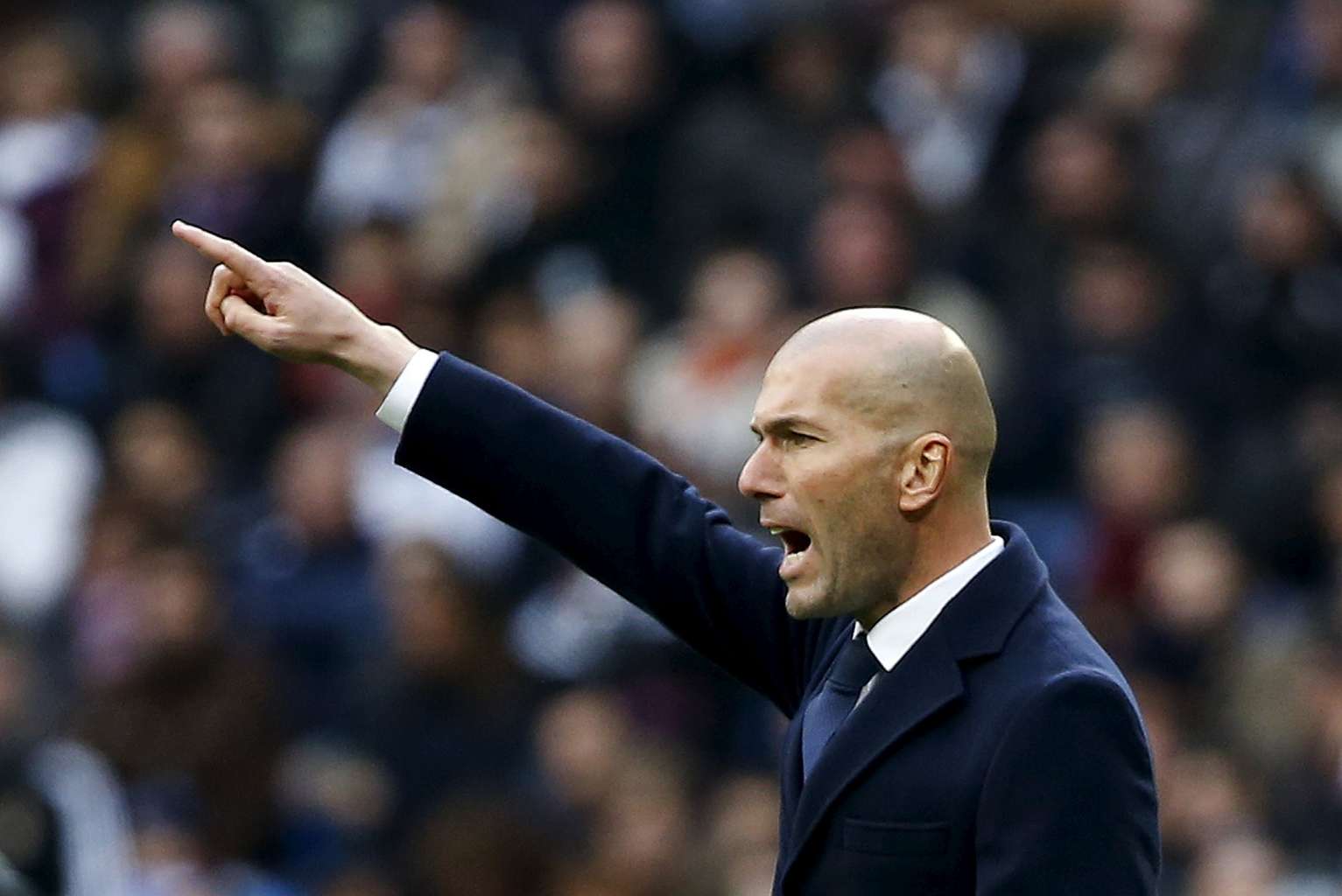 Real Madrid's coach Zinedine Zidane reacts.