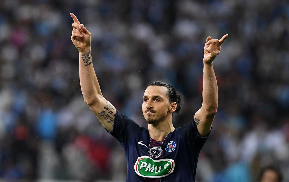 Paris Saint-Germain's Swedish forward Zlatan Ibrahimovic reacting during the French Cup final football match between Marseille and Paris Saint-Germain at the Stade de France in Saint-Denis, north of Paris, June 30.