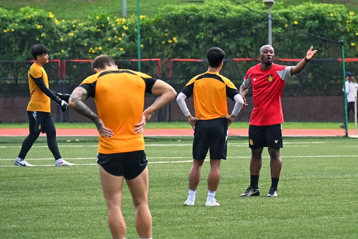Hougang head coach Robert Eziakor instructing his players at a training session ahead of the new season.