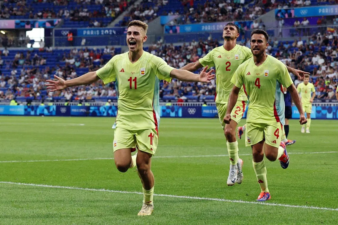 Barcelona’s Fermin Lopez scored a brace to help Spain beat Japan in another quarter-final game at the Lyon Stadium on Aug 2.
