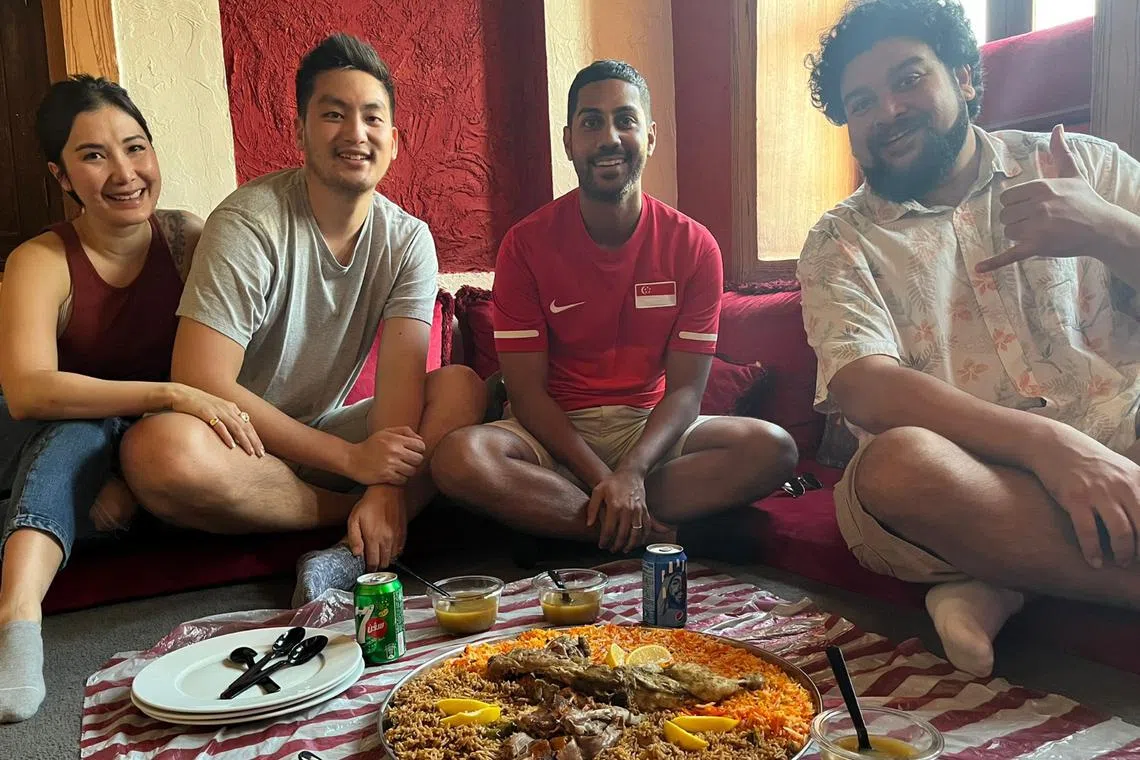 Peter Raj (second from right) said the briyani he and his friends had in a restaurant at Qatar’s famous Souq Waqif marketplace was “the most amazing” he has had.