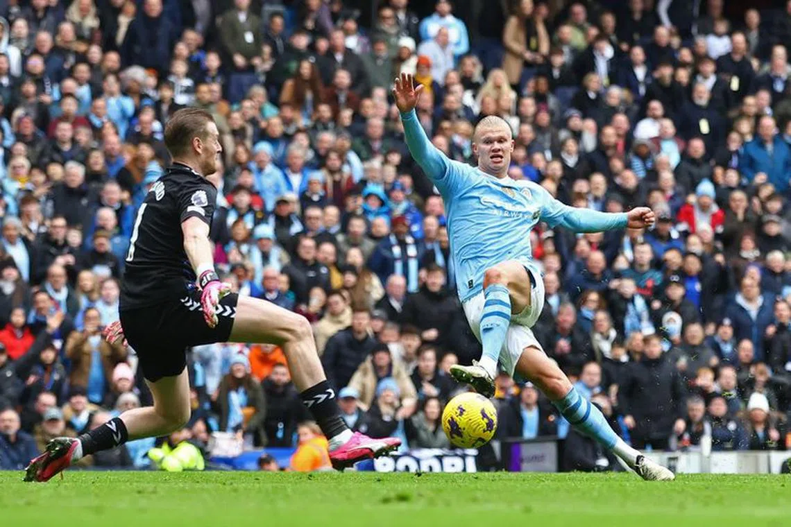 MANCHESTER, England - Erling Haaland announced his return to the scoresheet in emphatic fashion with a brace to lift Manchester City to a 2-0 home victory over relegation-threatened Everton on Feb 10 and provisionally into top spot in the Premier League table.