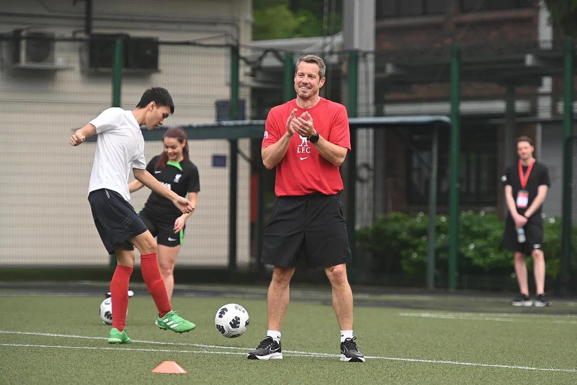 Liverpool CEO Billy Hogan at an LFC Foundation football clinic at Tanglin Trust School on July 28.