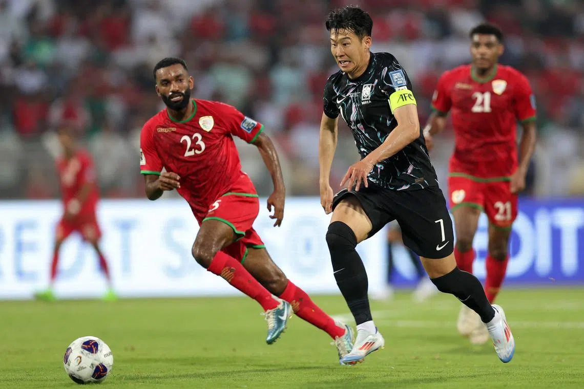 South Korean forward and captain Son Heung-min in action against Oman.