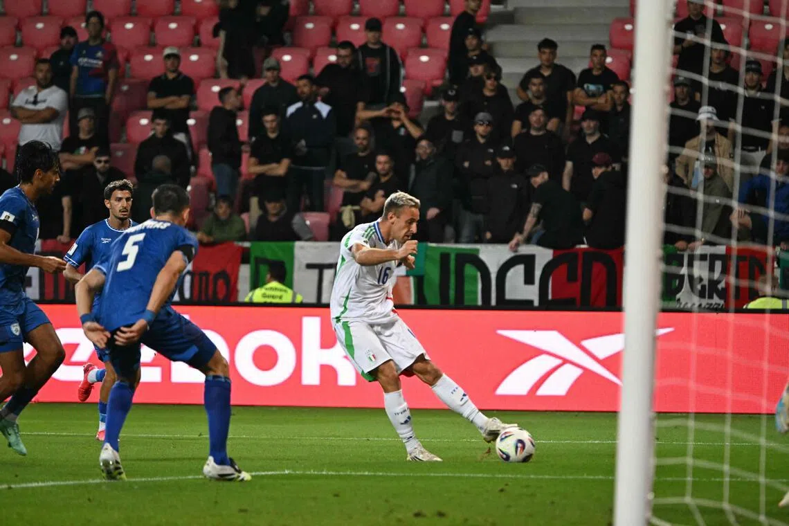 Italy's midfielder Davide Frattesi attempting a shot during the 2026 World Cup qualifiers against Israel on Sept 8 in Debrecen.