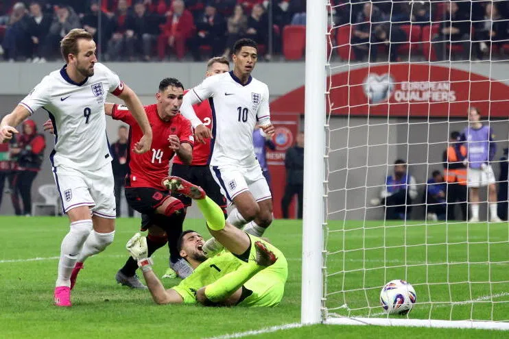 Henderson made an equally good save moments later, blocking Hoxha’s close-range effort after Dan Burn’s miscued pass put England in danger.